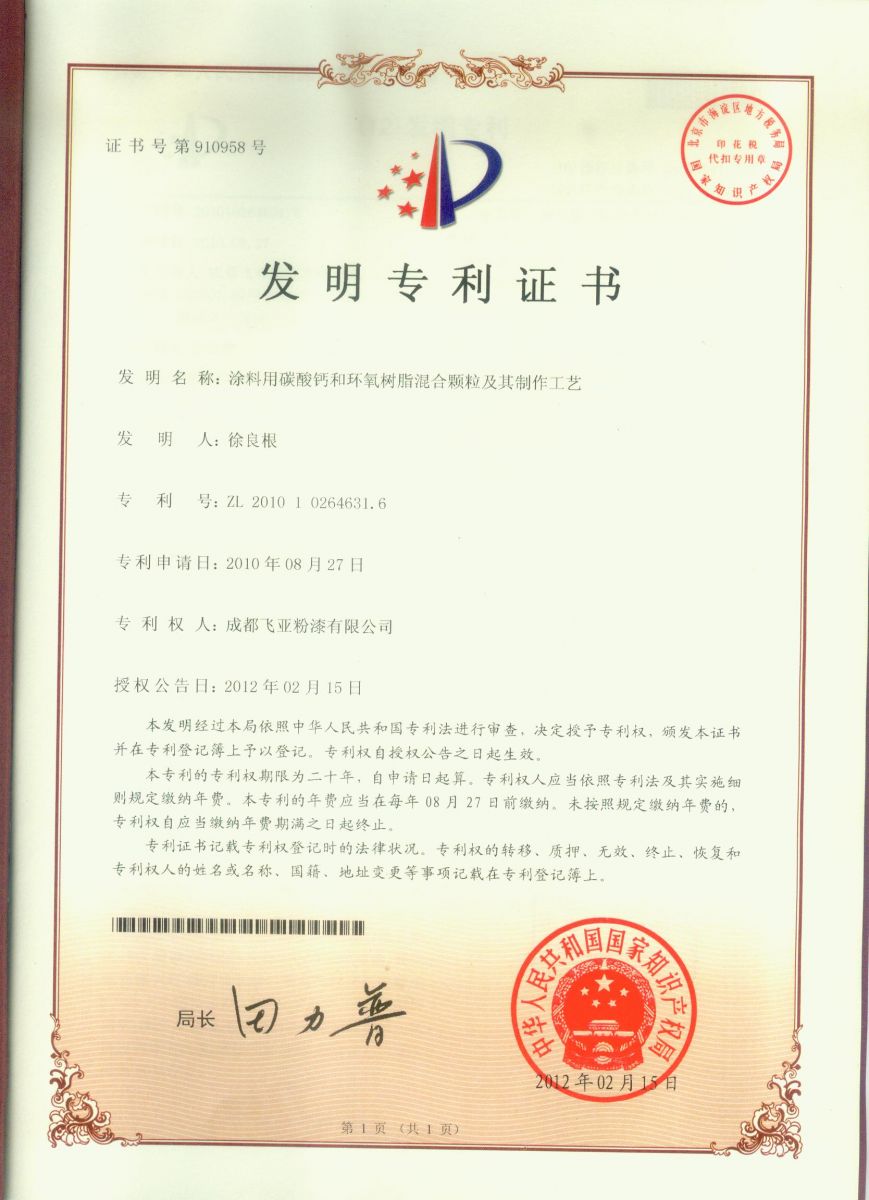 熱烈祝賀我司“涂裝用碳酸鈣和環(huán)氧樹脂混顆粒及其制作工藝”發(fā)明專利申請(qǐng)成功